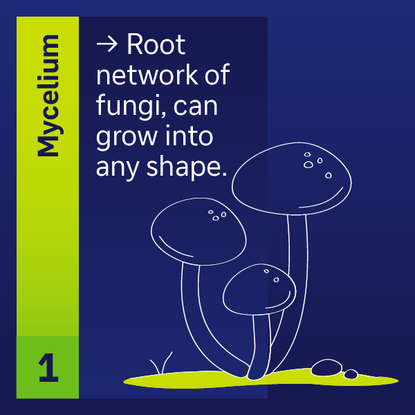 Mycelium is the underground root network of fungi – a network of fine threads that grows on organic waste. Under controlled conditions, it can grow into almost any shape, inspiring environmental pioneers, architects and designers alike.